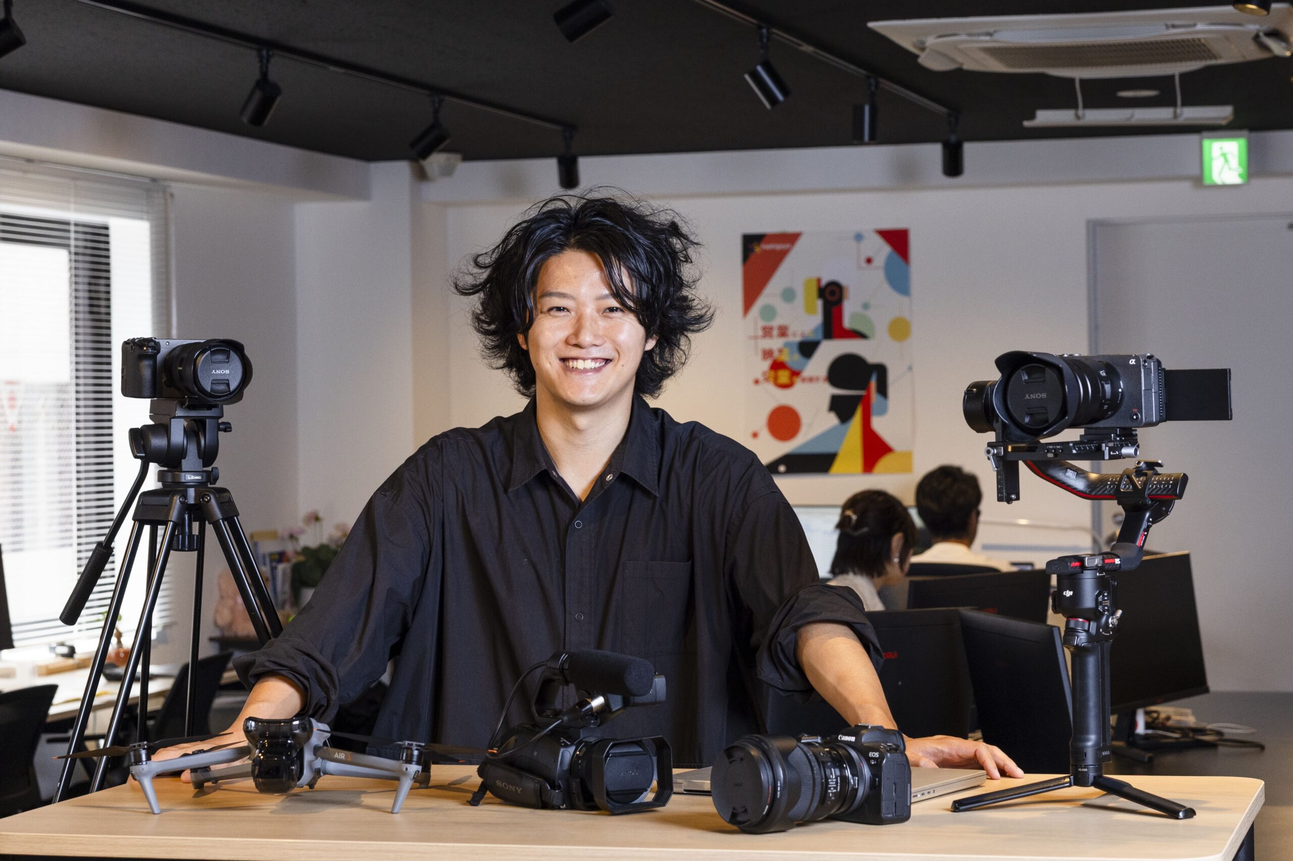 長田氏:一般的に、映像制作会社は営業やプロデューサーだけを社内で雇用し、ディレクターやカメラマンなどは社外のフリーランスに委託しているのですが、当社はクリエイターを社員として雇用しています。ほとんどの映像制作を内製化しており、機材から技術やスキルの要件、評価制度まで体系化しているのが特徴ですね。当社で働くとディレクションから納品まで映像制作に関わるすべての作業を経験でき、ある程度一人でこなせるようになります。